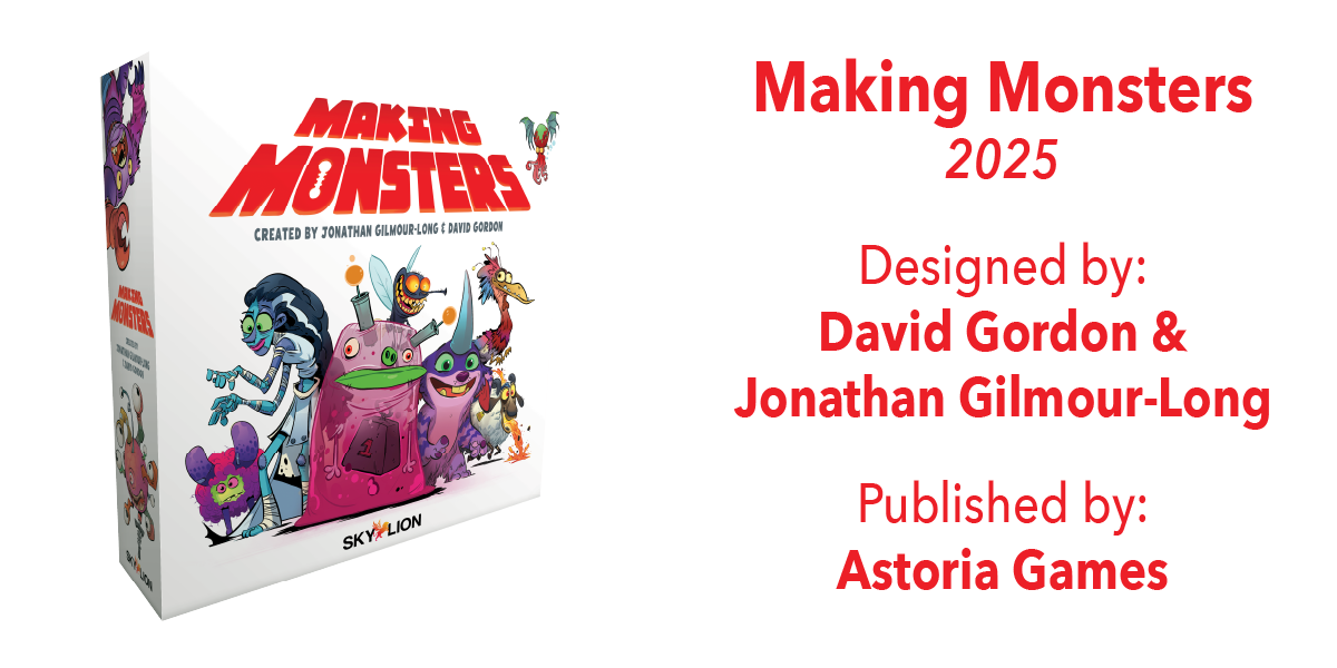 Hello and thank you for visiting David Gordon Game Design. I’m thrilled to have recently surpassed 650,000 of my games sold worldwide! You can find me on BGG here. If you’d like to receive my monthly email update, send me a note through the Contact form on this site.